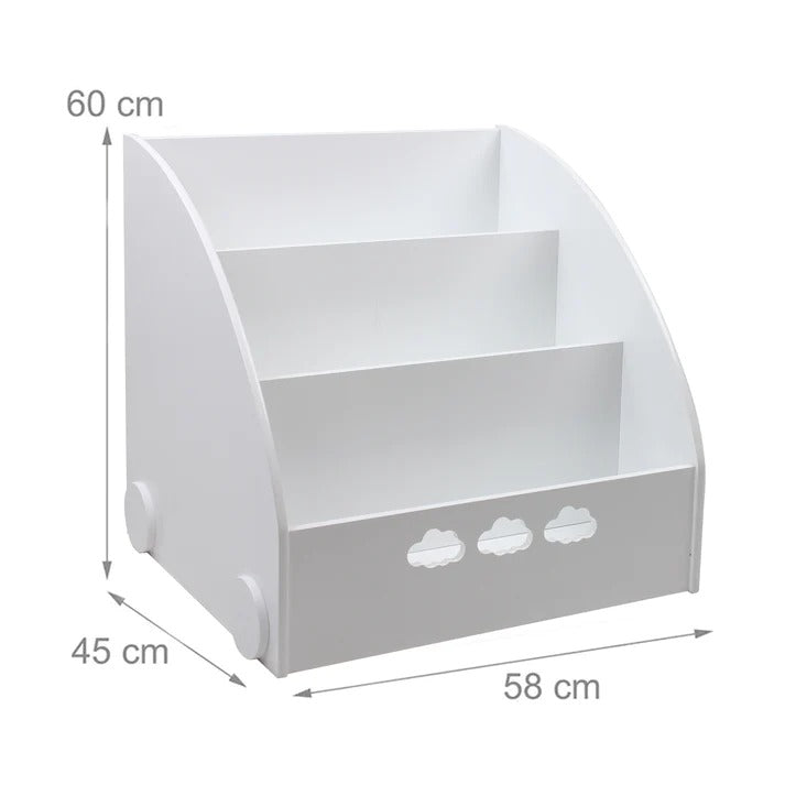 Dječija drvena polica za knjige, organizator za knjige i igračke, dio za odlaganje u obliku oblaka - bijela