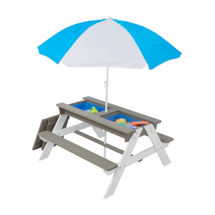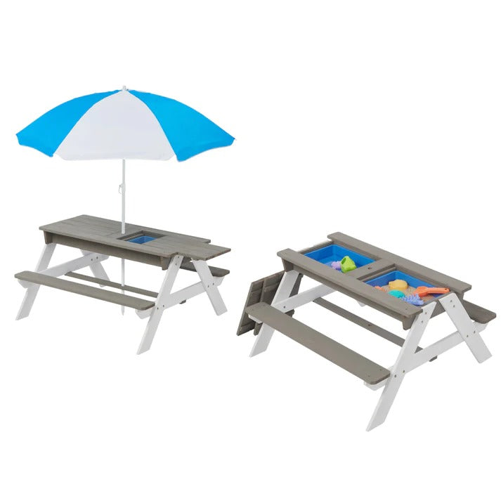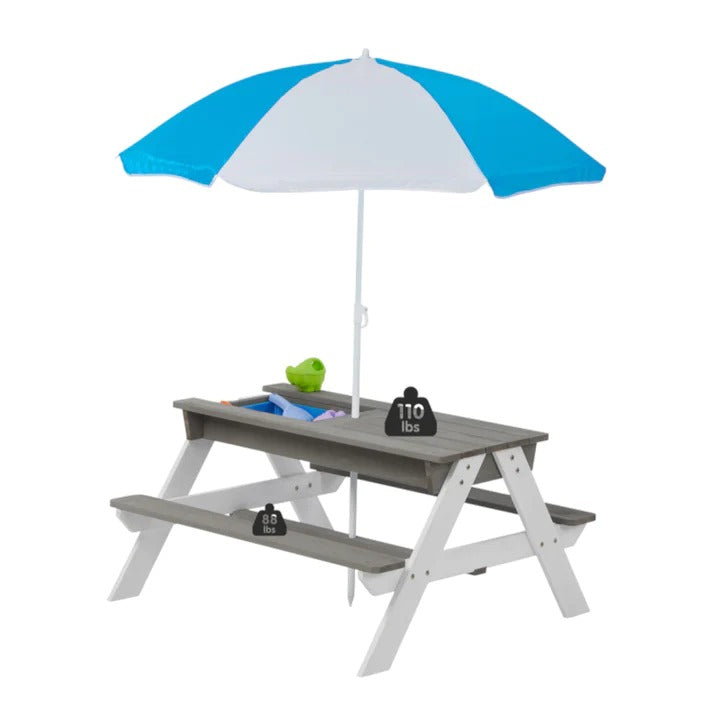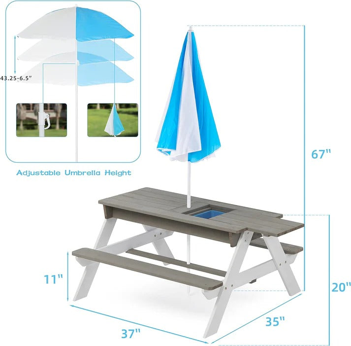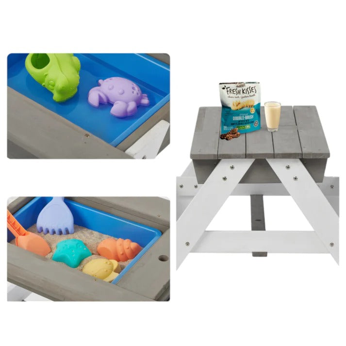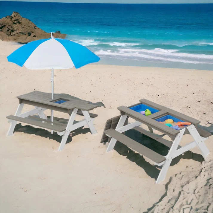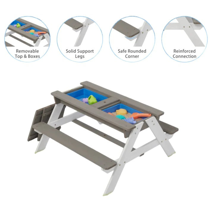 3-U-1 DEČIJI STO ZA PIKNIK, VODU I PESAK: Transformabilni sto sa 2 uklonjiva gornja poklopca može se koristiti kao sto za piknik, pesčanik ili kada za vodu. Omogućava djeci da se igraju, uče i uživaju u obrocima.