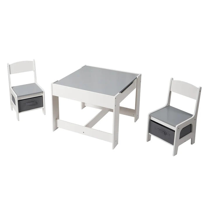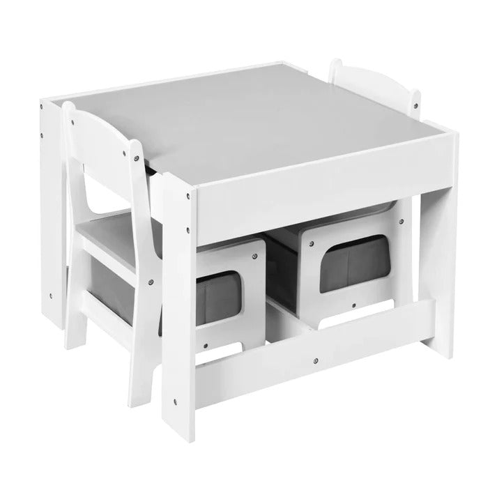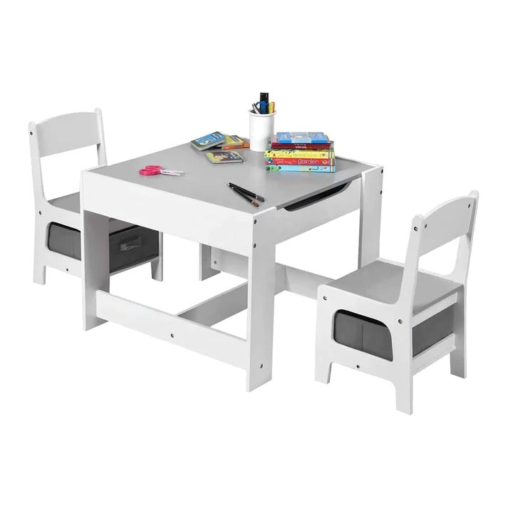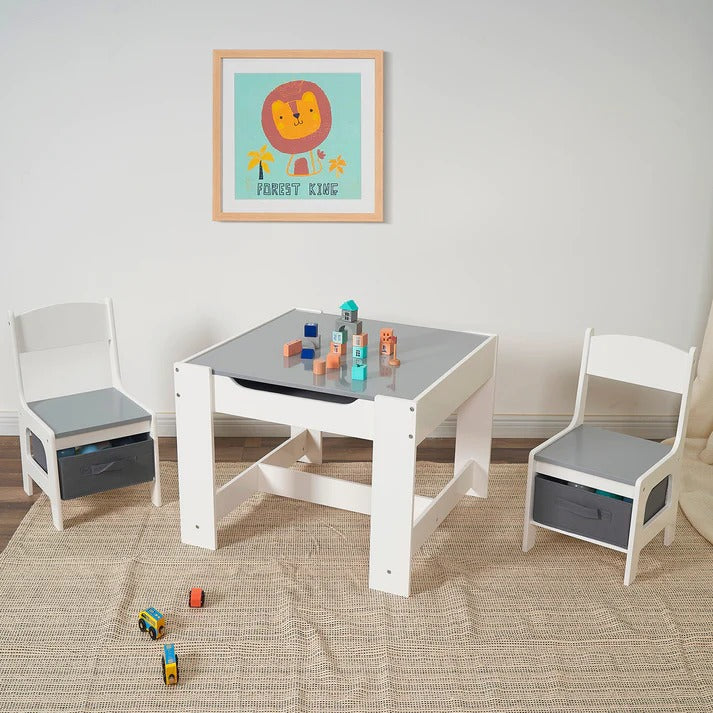 I sto i stolice imaju ugrađenu kutiju za odlaganje, omogućavajući djeci da organizuju knjige, igračke i konstrukcione setove. Prorezi i ručke olakšavaju otvaranje i zatvaranje.