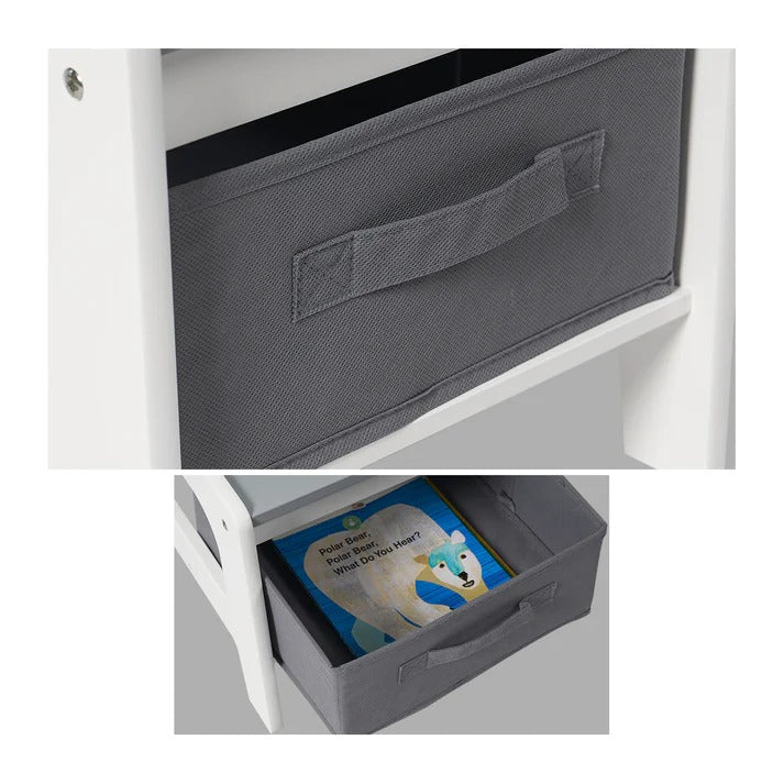Dve strane ploče stola pružaju dvije funkcije: sivu stranu koristite za čitanje, igru i slaganje knjiga, dok crna strana služi za pisanje i crtanje, podstičući razvoj dječje mašte.