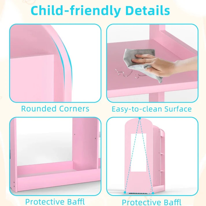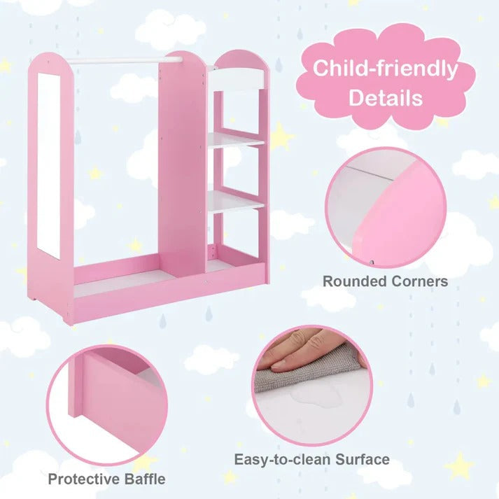Pružite svom djetetu elegantno i funkcionalno rješenje za skladištenje uz stalak za dječiju odjeću s ogledalom. Ova roze dječija garderoba idealna je za organizovanje odjeće, dodataka i obuće, dodajući elegantan akcenat svakoj dječijoj sobi.