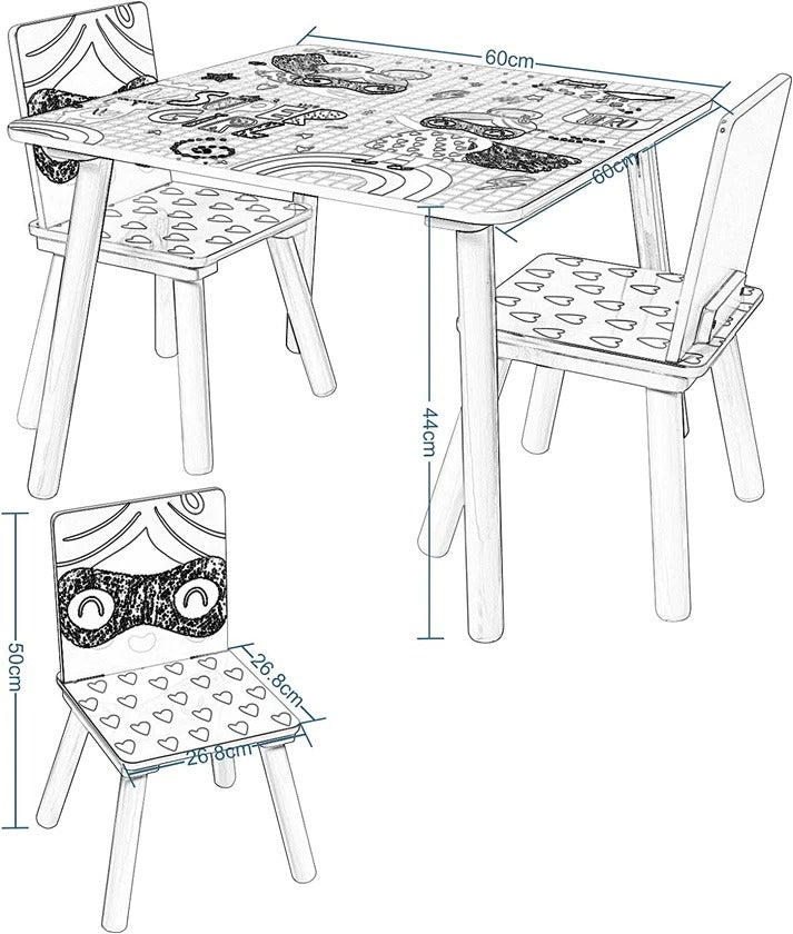 Dizajniran posebno za decu, ovaj visokokvalitetni drveni set ima bezopasni lak koji sprečava ogrebotine i olakšava čišćenje. Mališani mogu stvarati zanate, čitati, crtati, igrati se i jesti za svojim stolom i stolicama.