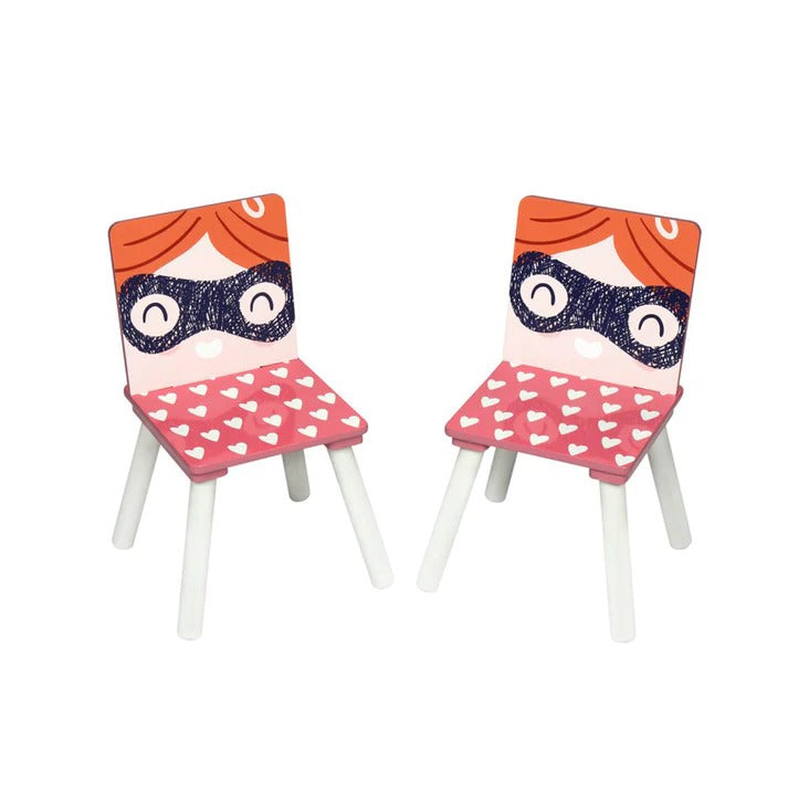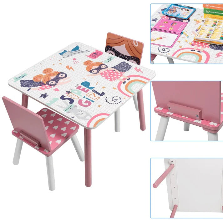Dečiji sto i 2 stolice – beli i roze dizajn