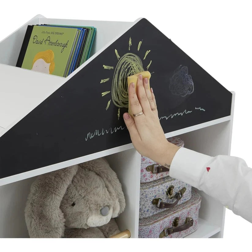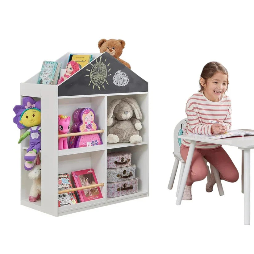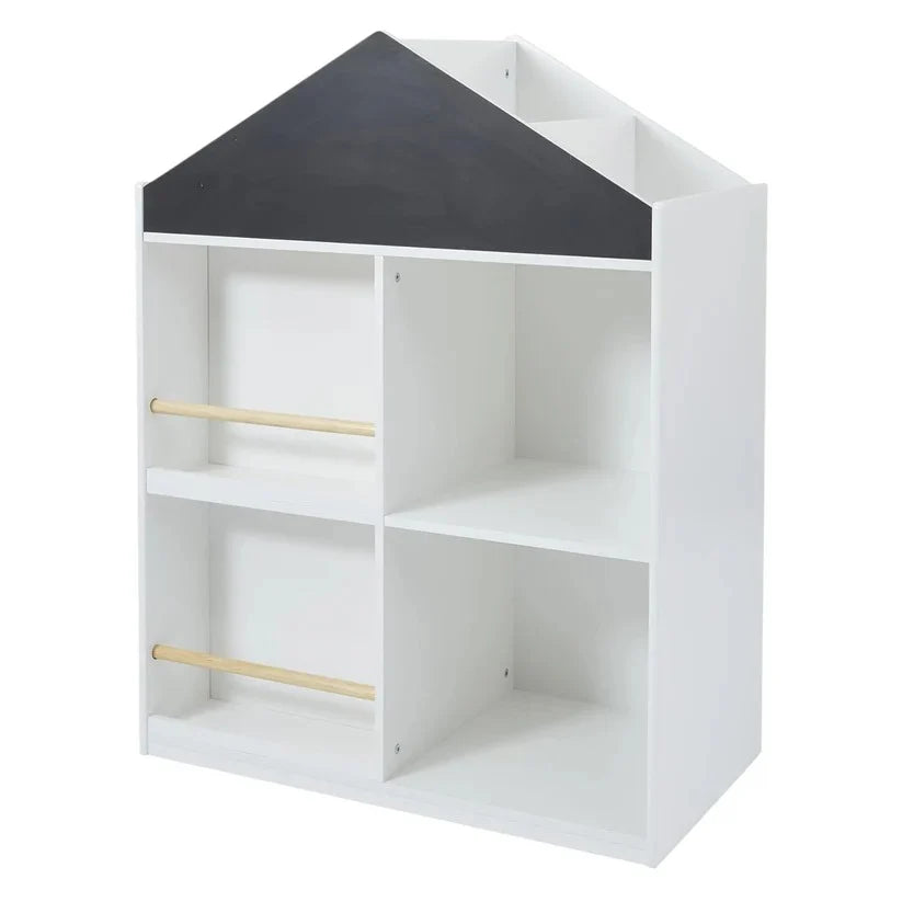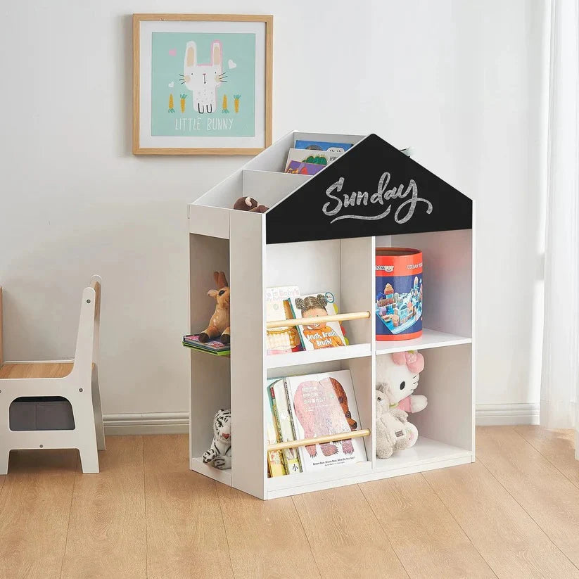 Oblikovana kao kuća sa prozorima, dječija polica za igračke i knjige pretvara skladištenje u zabavu. Sadrži 6 prostranih pregrada i skriveni bočni dio, savršen za organizovanje knjiga, kutija, slagalica i igračaka. Ugrađena tabla za pisanje kredom podstiče kreativnost i fine motoričke sposobnosti.