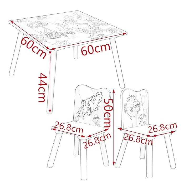 Stvorite savršeno mjesto za igru, kreativnost i učenje uz dječiji drveni stol i stolice s morskim životinjama! Ovaj set je idealan za svako dijete jer spaja sigurnost, funkcionalnost i zabavan dizajn. Dječiji stol i stolice izrađeni su s posebnom pažnjom prema udobnosti, stilu i inspiraciji za male umjetnike i istraživače.