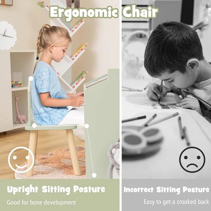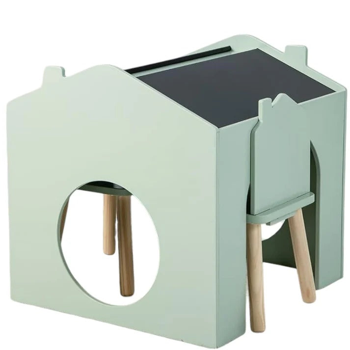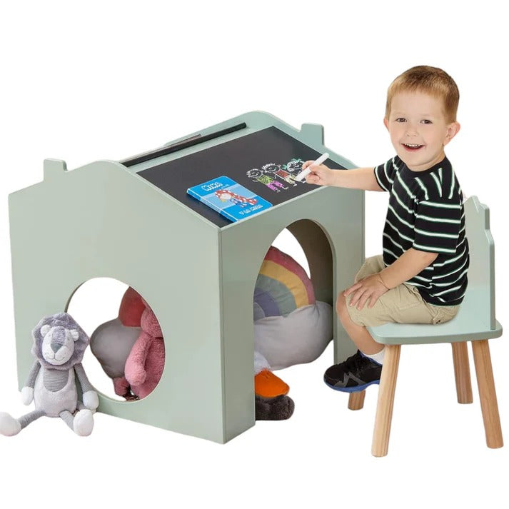 Dječiji sto sa 2 stolice - Kuća za više aktivnosti sa crnom tablom, stolom za crtanje i čitanje