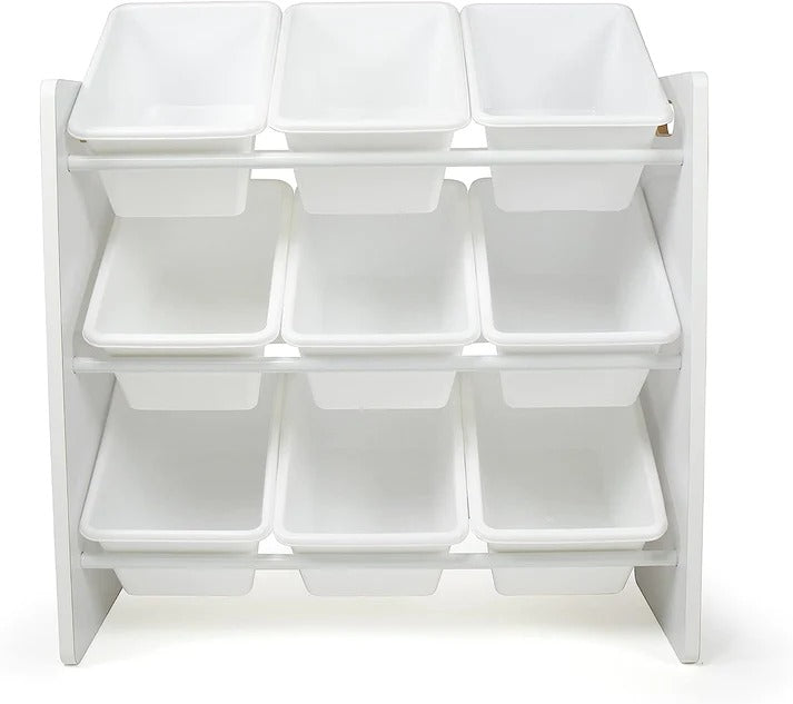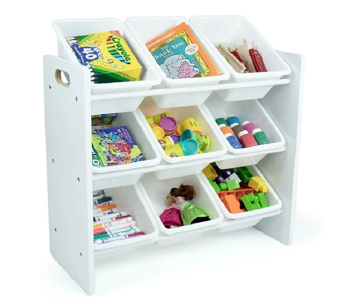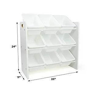 Polica sa 9 kutija za odlaganje, dio za dječiju sobu, organizator za igračke i knjige od drveta - BIJELI